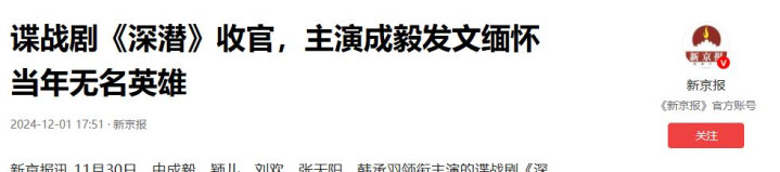 2024年成毅主演的年代谍战剧《深潜》播出。