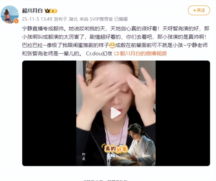 在她发声后,网友纷纷表示“被静姐认证的演技肯定没问题”“原来我不是一个人觉得成毅演得好”。